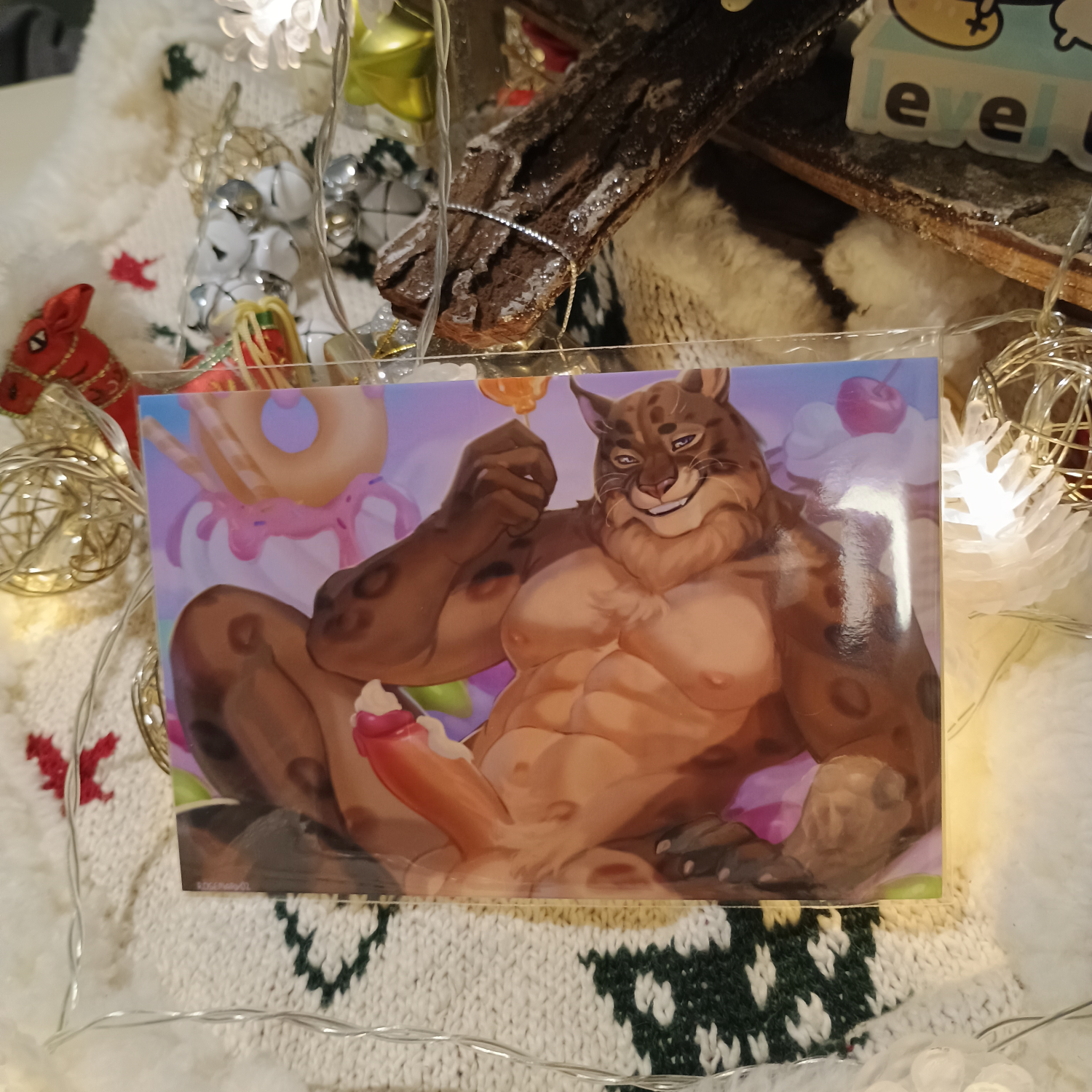 Drawn by my friend Rosemary, gentleman cat! With a candy and whipped cream on his cock :)