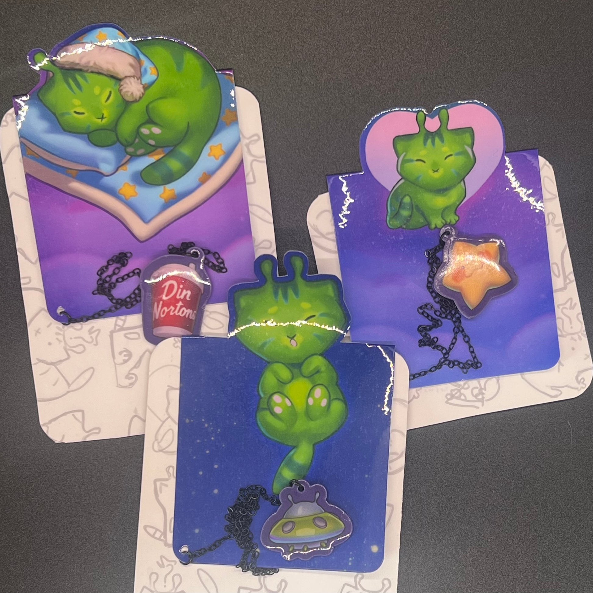 Drawn by my friend Rosemary and handmade by me! Cute magnetic bookmark with chain and charm.