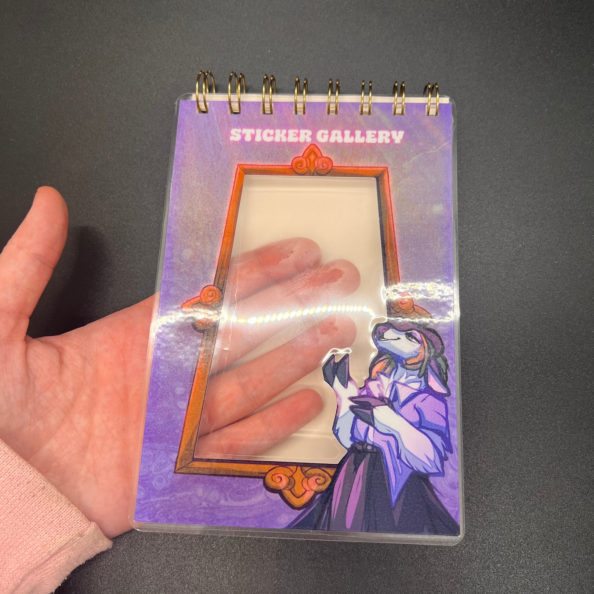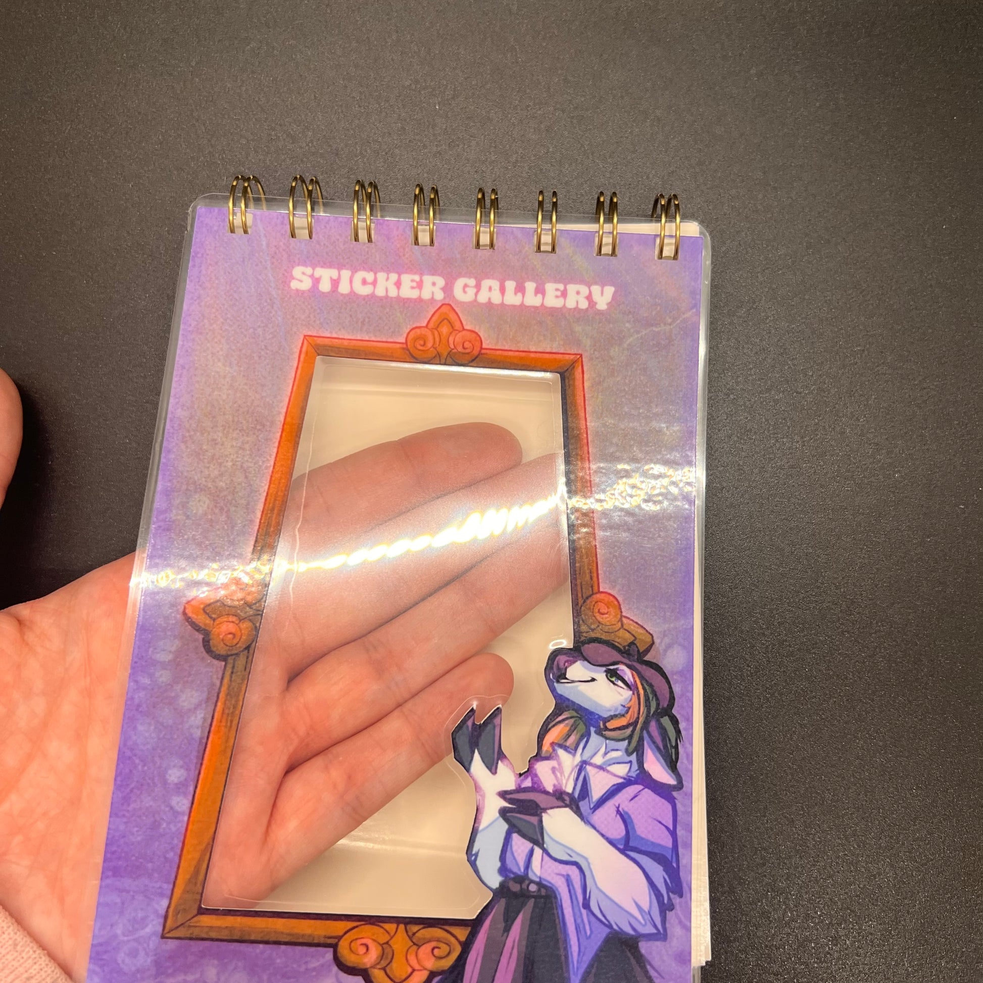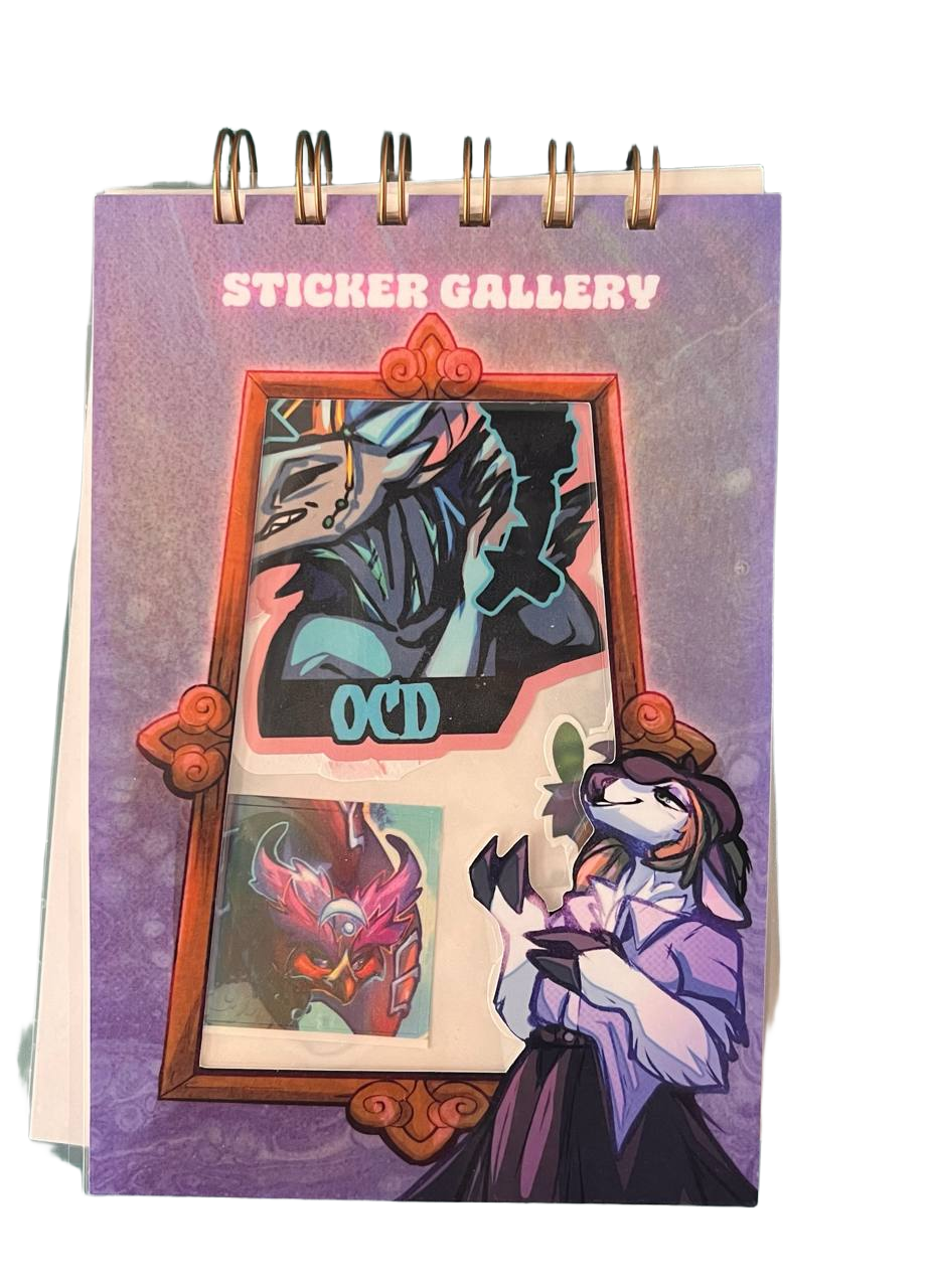 A solution to your sticker addiction, a sticker book! To store your stickers. Drawn, hole-punched and wired by yours truly in my living room!