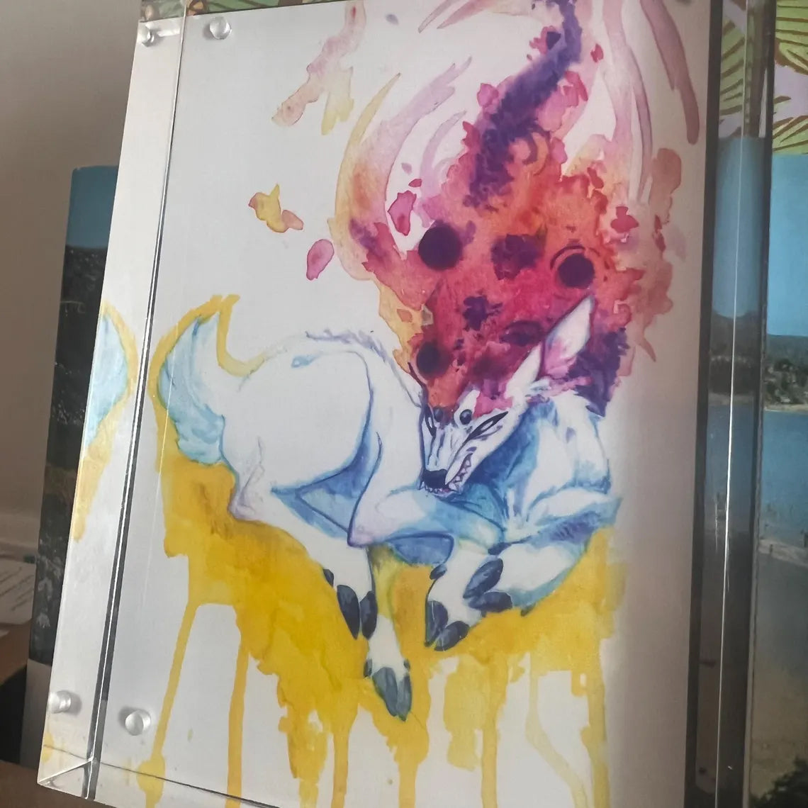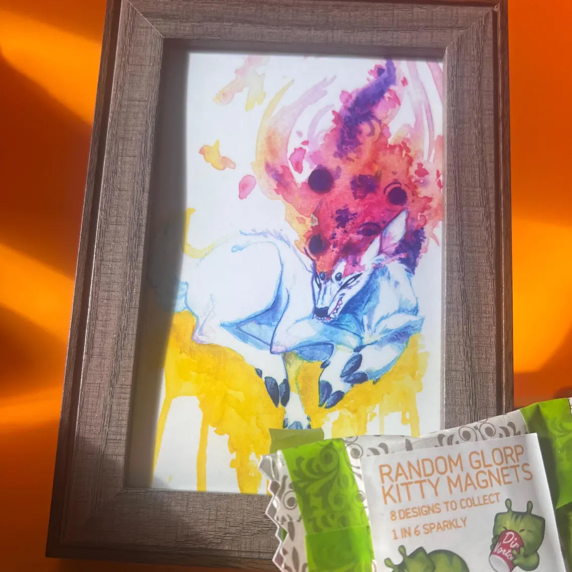Print of an artwork 'Vibrant Feeling' featuring feral wolf/deer. Part of 'CHROMA' exhibition at MAWA, in Winnnipeg, MB, Canada. 2025.